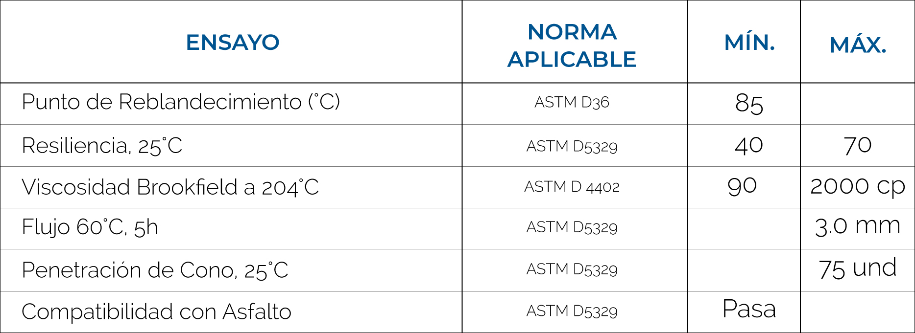Ideal para sellar juntas de dilatación en pavimentos hidráulicos que van a recibir una capa de pavimento asfáltico. Para utilizar como material asfáltico de sellado y/o reparación, aplicado en caliente, previamente mezclado con agregados pétreos de alta calidad, secos y limpios, para sellados, bacheos y reparación de pavimentos asfálticos y de hormigón hidráulico. Está diseñado para ser utilizado en una variedad de condiciones climáticas y se adhiere en pavimentos previamente preparados, limpiados e imprimados. Para su utilización se requiere de mezclas adicionales con agregados.